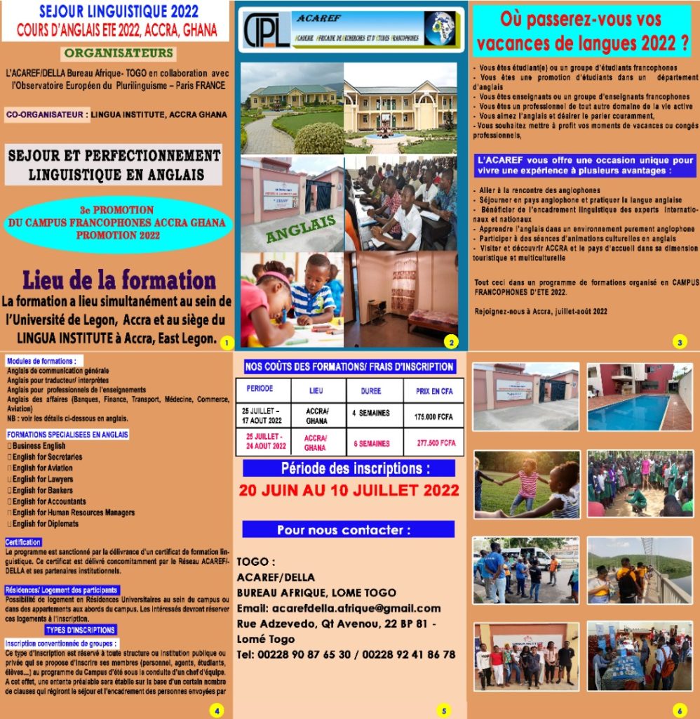 Tout ceci dans un programme de formations organisé en CAMPUS FRANCOPHONES D’ETE 2022.